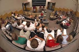 Is it a room full of people without a computer in sight? (If so, how is that room set up? Traditionally? For collaboration? Random group formation?)