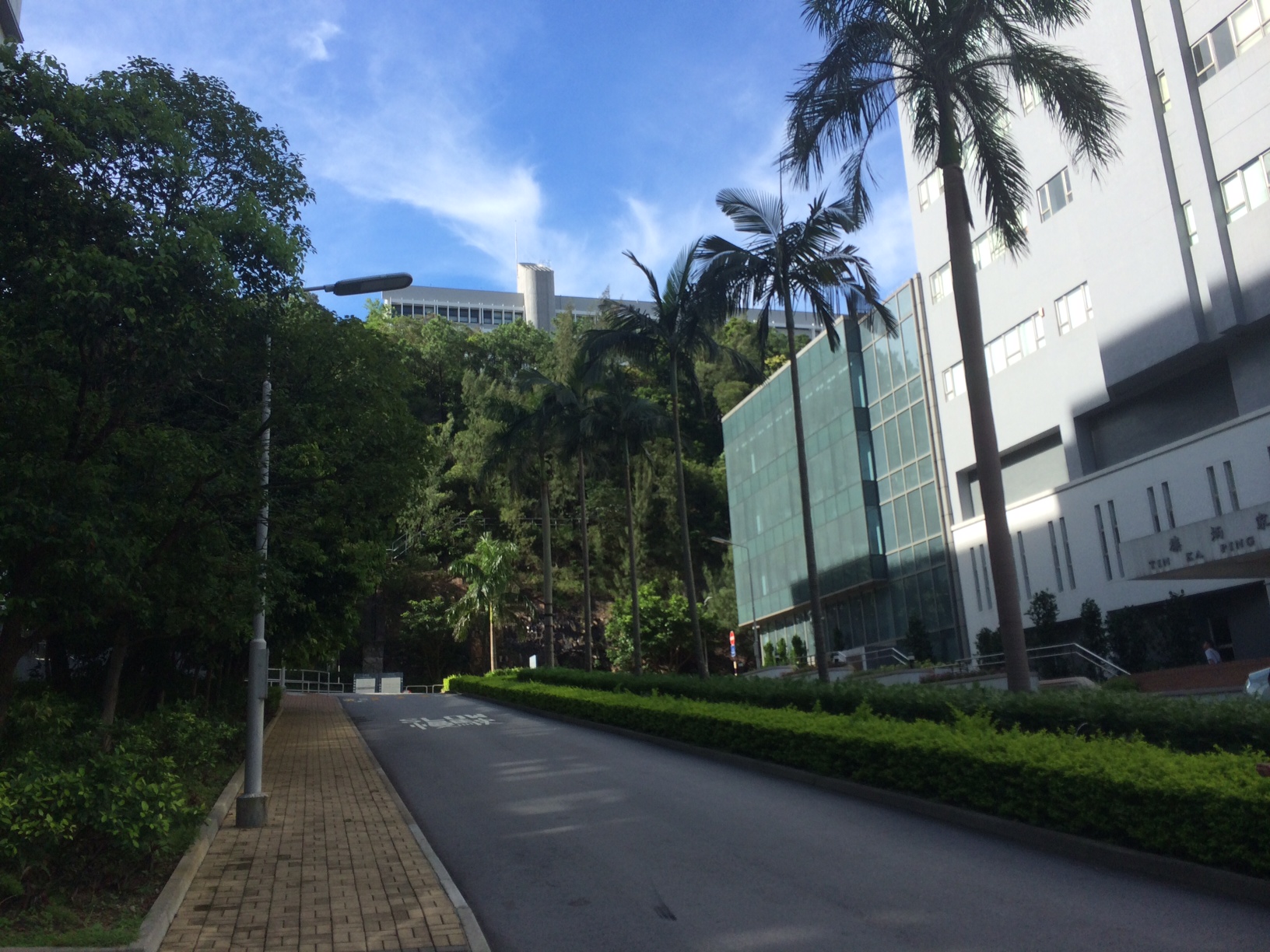 After a steamy few days, it seems cooler today and we’re seeing a large amount of blue sky. Here’s what the campus looks like from outside the building I’m teaching in!